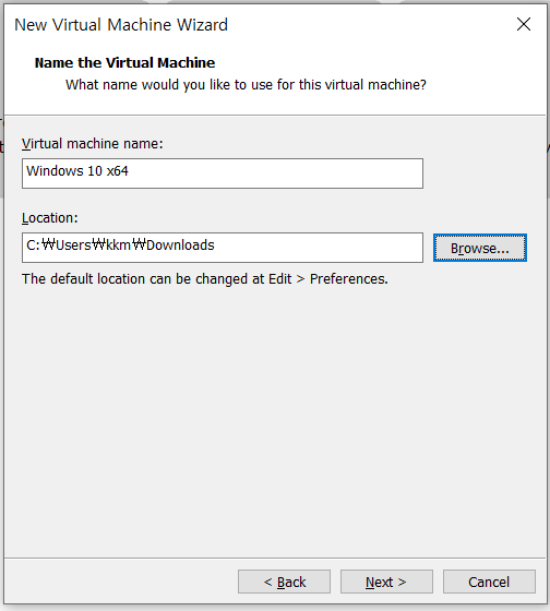 Location인 가상머신 파일의 위치를 지정해주고