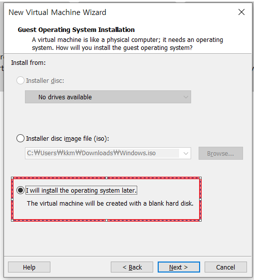 I will install the operating system later(나중에 운영체제를 설치 하겠다는 것 입니다.) 클릭