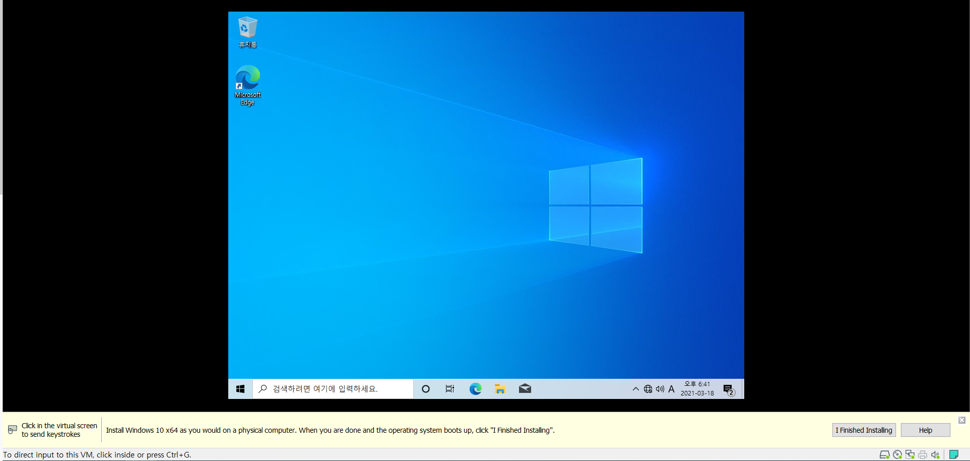 Finish를 클릭하면 가상머신이 생성됩니다.