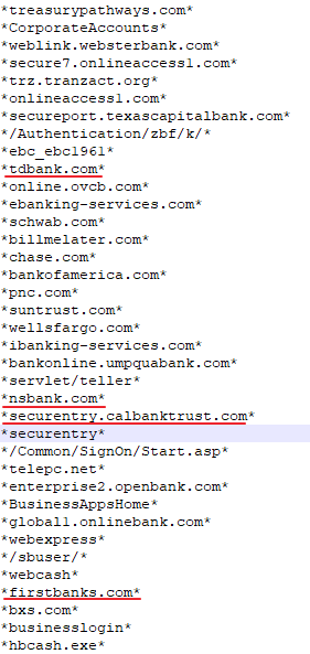 추가적으로 은행에 관련된 도메인이 있는 것으로 보아 금융권을 노리는 해당 파일은 악성코드로 볼 수 있다. 이렇게 은행의 목록들과 C&C 서버 목록을 추출해보았다.