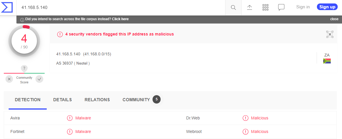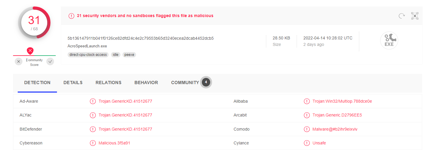 Virustotal 백신 엔진 분석시 위와 같은 결과를 얻을 수 있다.