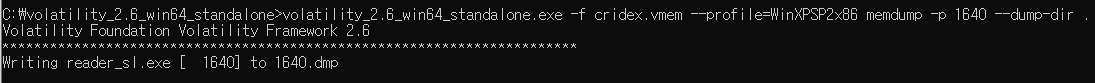 1. Pid 1640 메모리 덤프를 통해 1640.dmp파일을 추출